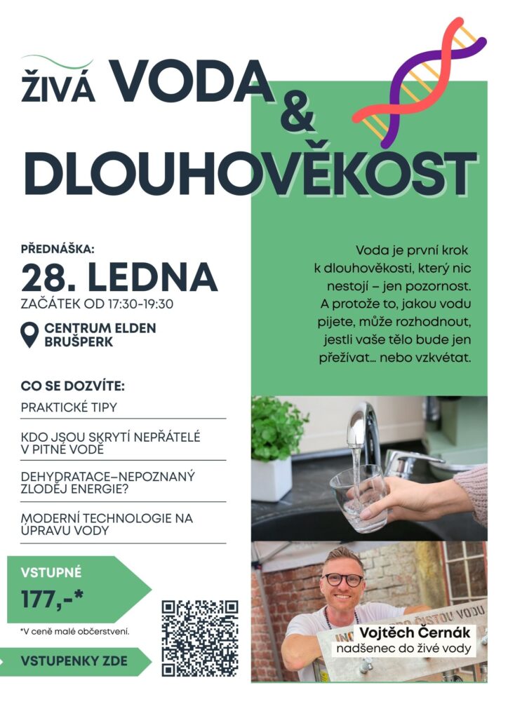 Vypijeme každý den více vody, než kolik sníme jídla. A přesto většina lidí netuší, jak zásadně kvalita vody ovlivňuje jejich energii, spánek, pleť, imunitu… i délku života. Tato přednáška ti otevře dveře do fascinujícího světa, který tradiční věda dlouho přehlížela – ale moderní výzkumy i tisíce osobních zkušeností to potvrzují: voda není jen „H₂O“. Je to palivo života. Proč přijít? Protože voda je první krok k dlouhověkosti, který nic nestojí – jen pozornost. A protože to, jakou vodu piješ, může rozhodnout, jestli tvé tělo bude jen přežívat… nebo vzkvétat.